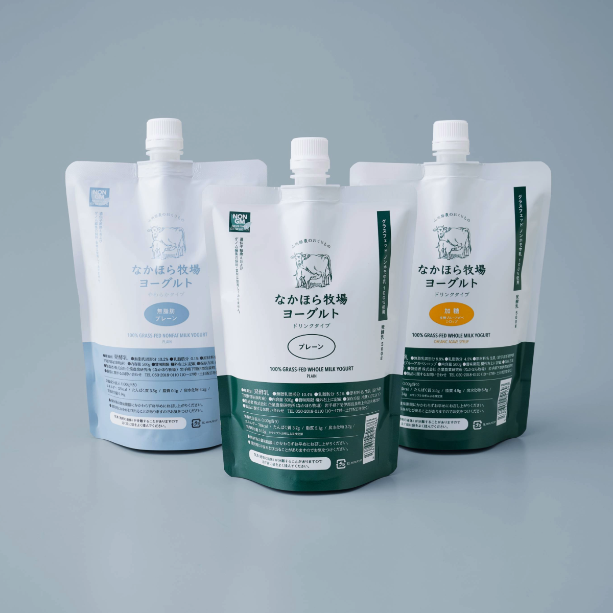 なかほら牧場のノンホモミルクと、「有機ブルーアガベシロップ」、健康な「放し飼い卵」、