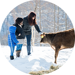 保険加入手続きや、注意事項の説明などをさせていただきます。 牧場説明、搾乳見学など