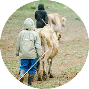 早朝の搾乳から始まり、夕方の搾乳まで。スタッフと一緒に働くことで、山地酪農について学んでいただく研修制度です(5泊〜)。夏休みを利用した学生の短期研修も受け付けています。短期研修では、研修費をいただいています。(※4泊までは見学扱いです)